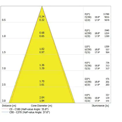 Abstrahlwinkel (Grad) | 36 |