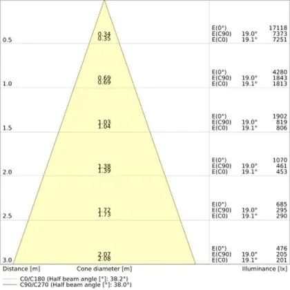 Der Abstrahlwinkel bezeichnet den Winkel, in dem das Licht aus der Lichtquelle ausgestrahlt wird. Er wird in Grad (D) angegeben. Je geringer die Gradzahl des Abstrahlwinkels ist, desto kleiner ist auch der Durchmesser des Lichtkegels, den die Lichtquelle produziert.
