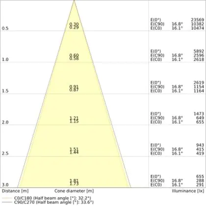 Der Abstrahlwinkel bezeichnet den Winkel, in dem das Licht aus der Lichtquelle ausgestrahlt wird. Er wird in Grad (D) angegeben. Je geringer die Gradzahl des Abstrahlwinkels ist, desto kleiner ist auch der Durchmesser des Lichtkegels, den die Lichtquelle produziert.