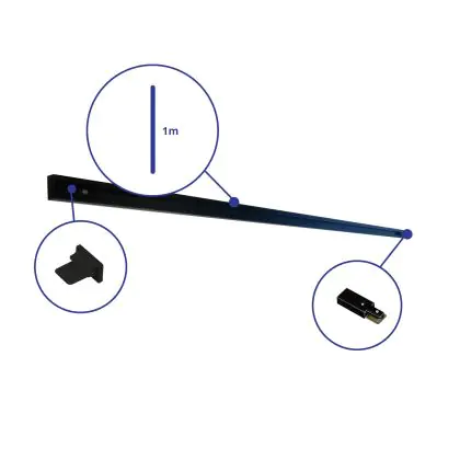 1-Phase Système de rails 1m Noir | incl. capuchon de fin et Connecteur d’Alimentation