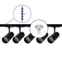 Description Ensemble complet Rail Monophasé Rail 3 Mètre Noir | incl. 5x Spot + GU10 2700K 3W Dimmable + Embout, Connecteur d’Alimentation et I-Connecteur