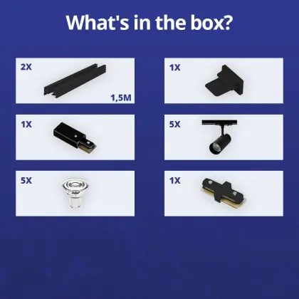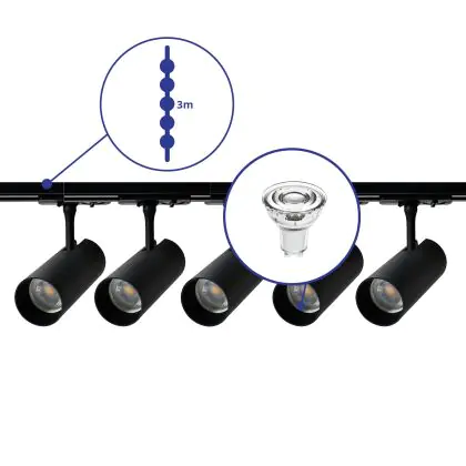| Nom du fabricant | Complete Straight 3-meter 1-Phase Track Set Black incl. 5x Spot fixture + GU10 2700K 3W Dim – 2x 1.5 | |