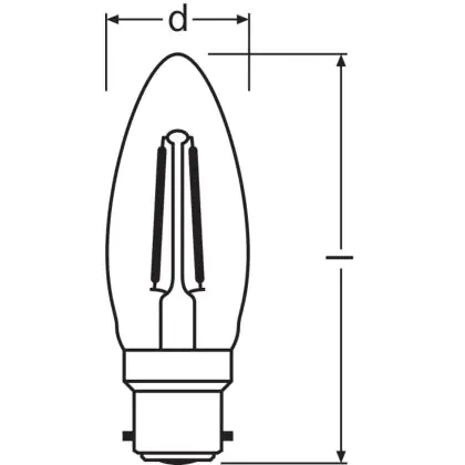 Description Ledvance Classic Performance LED Ampoule B22d Bougie Filament Claire 2.5W 250lm - 827 Blanc Très Chaud | Équivalent 25W