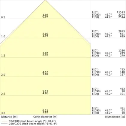 L'indice d'éblouissement unifié (UGR) indique dans quelle mesure la lumière d'un produit est aveuglante. Cette valeur change en fonction du domaine d'application et doit être conforme aux normes européennes (Norme EN 12464-1). Une faible valeur UGR signifie un faible facteur d'éblouissement. Pour les bureaux et les écoles, l'éclairage avec une valeur UGR<19 est obligatoire et pour les zones publiques un UGR<22. Dans notre blog, vous trouverez de plus amples informations sur l'UGR.