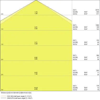 Le code couleur se compose de l'indice de rendu des couleurs (IRC) et de la température de couleur (Kelvin). Le premier chiffre indique le rendu des couleurs (1 = très mauvais rendu des couleurs, 9 = meilleure authenticité des couleurs). Le deuxième et troisième chiffre indiquent la température de la couleur. Exemple : Le code couleur "830" indique que la lampe a un bon rendu des couleurs (8) et une couleur de lumière blanche chaude (30 = 3000K). |