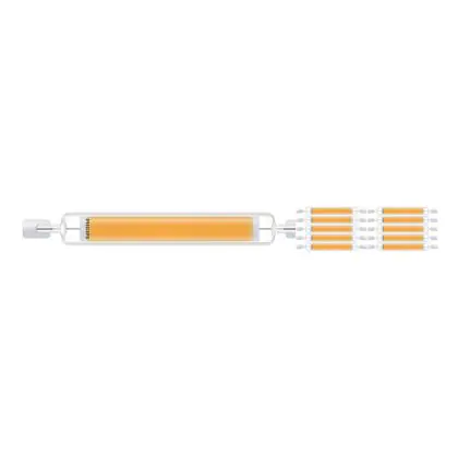 Lot 10x Philips Corepro LED Lineair R7s 118mm 7.2W 810lm - 830 Blanc Chaud | Équivalent 60W est une ampoule tubulaire linéaire à double extrémité. Ce type d’ampoule permet de délivrer une lumière homogène à 360° avec comme température de couleur 3000K - Blanc Chaud. Cette ampoule LED R7s de chez Philips est la solution idéale pour le remplacement de vos anciennes ampoules halogènes. Cette ampoule LED n’a pas besoin de transformateur, elle fonctionne avec 230V et peut se connecter directement sur le secteur électrique.