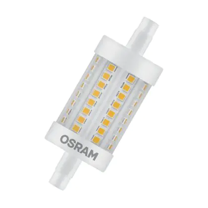 Osram LED R7s 78mm Claire 8W 1055lm - 827 | Remplacement 75W est une ampoule tubulaire linéaire à double extrémité. Ce type d’ampoule permet de délivrer une lumière homogène à 360° avec comme température de couleur 2700K - Blanc Très Chaud. Cette ampoule LED R7s de chez Osram est la solution idéale pour le remplacement de vos anciennes ampoules halogènes. Cette ampoule LED n’a pas besoin de transformateur, elle fonctionne avec 230V et peut se connecter directement sur le secteur électrique.