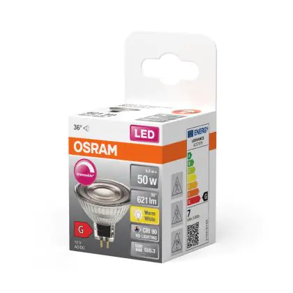 Description Osram LED Superstar Réflecteur Spot GU5.3 MR16 6.8W 621lm 36D - 927 | Meilleur Rendu De Couleur - Dimmable - Remplacement 50W