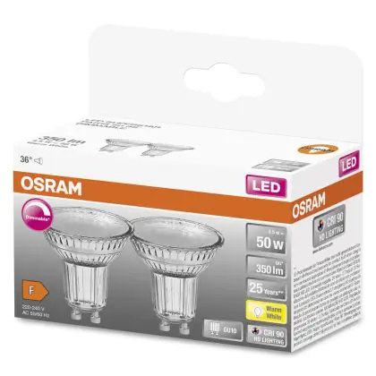 Description Osram Superstar LED GU10 Spot 4.5W 350lm - 927 | Dimmable - Meilleur rendu de couleur - lot de 2 - Remplacement 50W